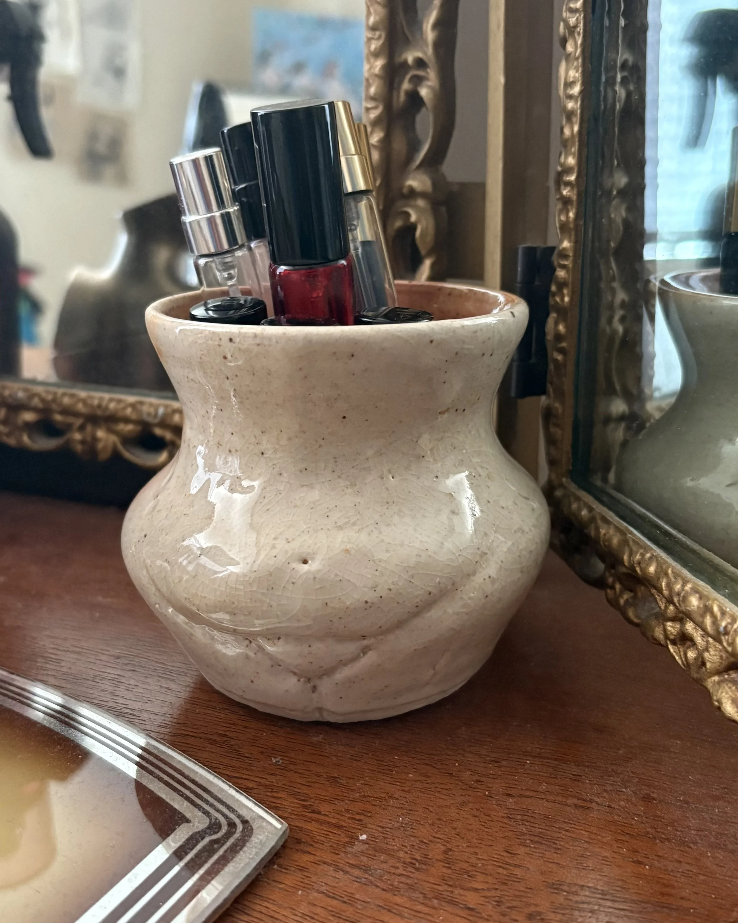 Categories: All collage drawings paintings ceramics All / Figure Lamp with Mohair Lampshade $250.00 tatted up vase - femme $80.00 tatted up vase - masc $80.00 Body Vase - Sea Moss Blue $70.00 Body Vase - Freckled White $70.00 body vessel - dark brown $70.00 body vessel - sepia $60.00 masc body vessel - marigold $60.00 body vessel - white $60.00 stretch mark vase - grey and white $60.00 belly bowl - peach fuzz $55.00 body vase - tenmoku $55.00 body vessel - mermaid $55.00 subtle belly vessel - matte brown $45.00 subtle belly bowl - medium $45.00 belly bowl - medium $45.00 belly bowl - medium $45.00 belly bowl - medium $40.00 belly bowl - small $40.00